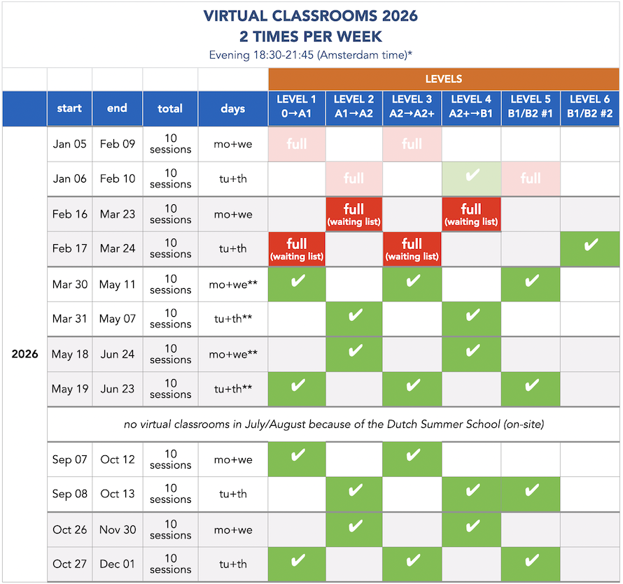 Access to #dutchgrammar is included from 4 weeks prior to the start of the course until 4 weeks after the end date of the course.